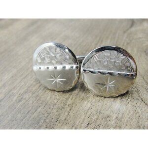 Unbranded Silver Round Starburst Checkerboard Cufflinks lend a vintage charm to any tux shirt dress suit. With a bullet back style, the material is unknown.