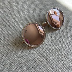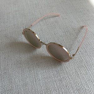 Light pink pearl oversized round sunglasses with pink mirrored lenses
