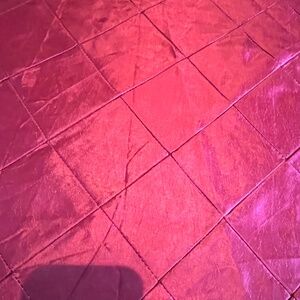 Bright pink , 90" round table cloth. Sewn with a square pattern. Table cloth is shown on a 48" table