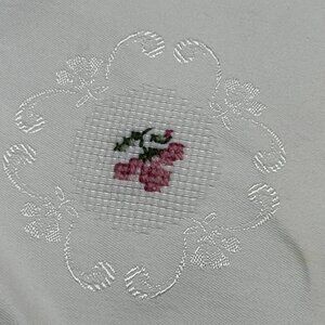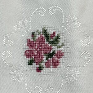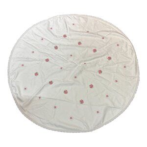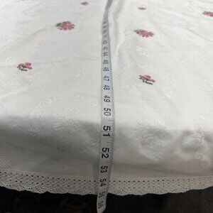Round Tablecloth Hand Cross Stitch Crochet Lace Victorian Cotton 50” Diameter