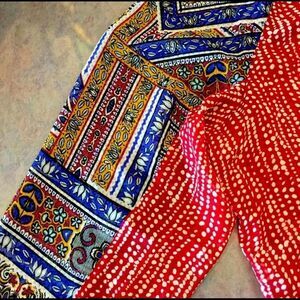 NEW patchwork multicolored lightweight top! A great top with abstract design, round neckline, tassel closure, 3/4” sleeves, longline round hemline blouse.