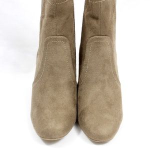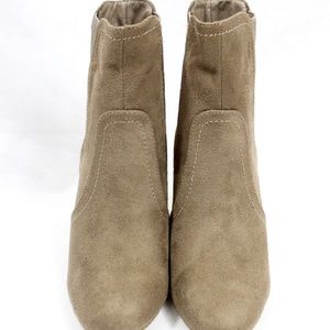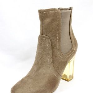 Round Toe Faux Suede Clear Perspex Lucite Heel Ankle Women's Dress Slip On Bootie