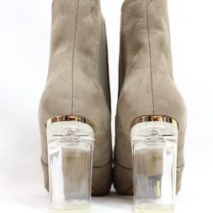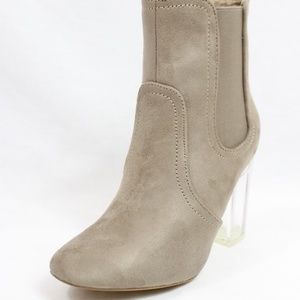 Round Toe Suede Clear Perspex Lucite Heel Bootie