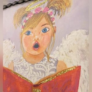 Soo adorable! Love the glitter accents placed around her! Smoke free home. Measures 6” x 6” x 1”. Small manufacturer defect on top - not noticeable from a distance.
