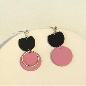 These two-tiered dangle earrings are the perfect blend of classic and contemporary style. The black and pink circles are elegantly adorned by a gold ring, and the acrylic material gives them a modern edge. They'll add a touch of sophistication to any outfit, whether you're dressing up for a special occasion or simply accessorizing for everyday wear. Their understated yet eye-catching design makes them a versatile choice for any fashion lover.