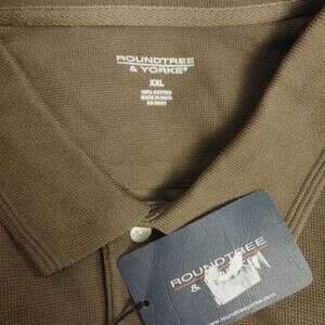 Round Tree Yorke Men's XXL Brown 3/4 Button Short Sleeve Polo Shirt