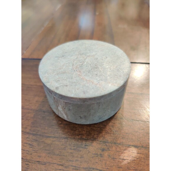 Round Trinket Jewelry Box Gray Marble Stone Made In Brazil 2.25" Vintage