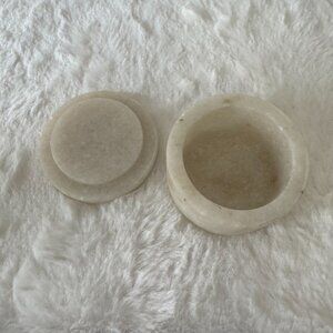 Round White Marble Trinket Box With Lid Handcrafted for Jewelry Small Keepsakes