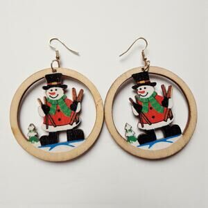 Bring holiday cheer to your look with these round wood snowman earrings! Lightweight and festive, perfect for Christmas parties or gifting.