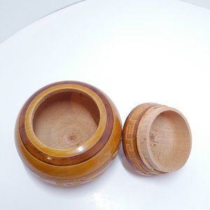 Round Wooden Multipurpose Jewelry Trinket Box w/ Lid Hand Crafted Carved Floral.