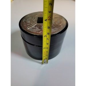 Round Wooden Trinket Jewelry Box Bird Floral Embossed Silver Plate Lid