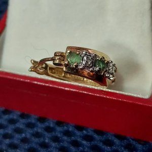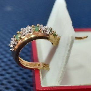 Round emerald & CZ and sterling w gold wash single earing 1.5 cm round: clean and ready to wear this has a leaver hook and is from Ross Simons collection: box is for picture only and this is for a single earing listing