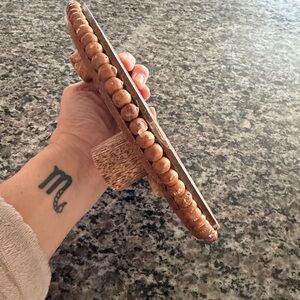 Rustic wood riser. Hasn’t been used but there is a small imperfection on one side. See images. All distress is the look of this piece.
