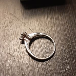 Round solitaire ring. Sterling silver band. Size 6. It is a cz but it looks great and very beautiful.