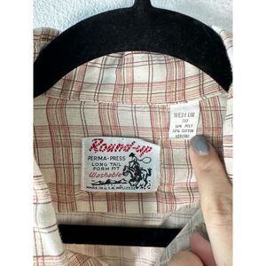 Round-Up Vintage Pearl Snap Plaid Cream Red Long Sleeve Shirt Men's Size Medium
