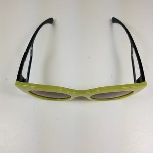 Rounded cat eye sunglasses with clear window detail on the arms