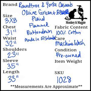 Roundtree And Yorke Casuals Flannel Outdoors Tan Blue Green Mens Big 3XB