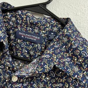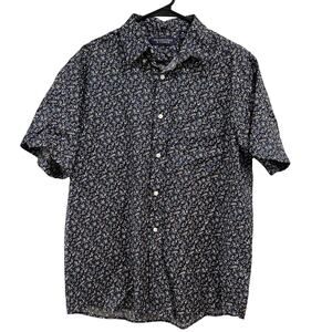 Roundtree & York Navy Paisley Casual Button Down Top Medium