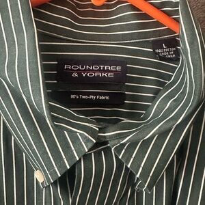 Add a pop of color to your wardrobe with this Roundtree & York button-down shirt. The shirt features a stripe pattern in a colorful and outdoor theme, perfect for the style-conscious man. The shirt is made of high-quality materials and has a button-down collar style with long sleeves. It is a regular fit shirt that is perfect for any casual occasion. The shirt is available in size L and has a button closure. This shirt is a must-have for any fashion-savvy man who wants to add some color and style to his wardrobe. It is perfect for a day out with friends or a casual weekend brunch. The shirt is made of high-quality materials and is sure to last for years to come. Get your hands on this stylish shirt today!