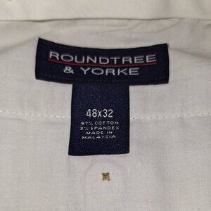 These Roundtree & Yorke khakis are size 48"x32", and are perfect for your next pair of work slacks.