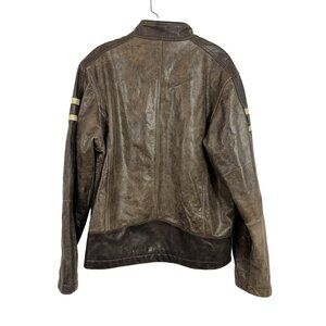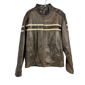 Roundtree & Yorke Brown Leather Striped Jacket Racing Biker Pockets Size Medium