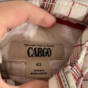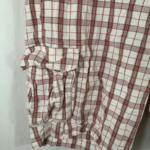 Roundtree Yorke Cargo Shorts Men's 42 White Red Plaid 100% Cotton Button