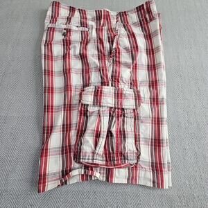 Roundtree & Yorke Cargo Shorts Men's Size 38 Red & White Plaid 11" Inseam