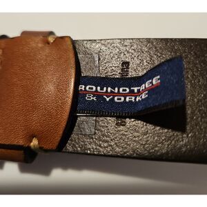 Mens leather belt by Roundtree & Yorke. Features tan quality leather and hardware.