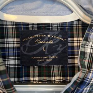 Roundtree & Yorke Casuals Men’s Long Sleeve Plaid Button Down Large Blue Vintage