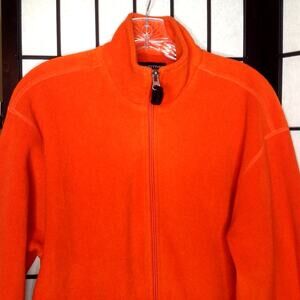 Very soft fleece jacket. Orange zip front with two side zip pockets. Size small.