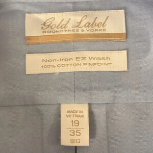 Roundtree & Yorke Gold Label Dress Shirt Blue Pin Point Tall Man