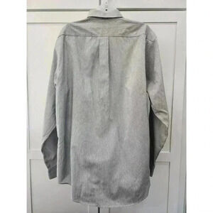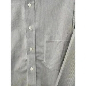 Elevate your wardrobe with this stylish Roundtree & Yorke dress shirt. The gold label Men's Large Button-Up Shirt in Blue and White is perfect for any occasion. Made of 100% cotton, this shirt features a striped pattern, long sleeves, and a collared neckline with a button closure. The regular fit and point collar style make it a versatile addition to any wardrobe.