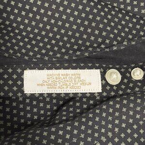 Classic and versatile, this Roundtree & Yorke Gold Label men’s dress shirt (size Large) features a black geometric microprint pattern. Made from 100% cotton with a crisp non-iron finish, it combines style with easy care for work, events, or everyday wear.