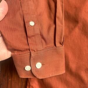 Roundtree & Yorke Gold Label men's long sleeve button down shirt in a vibrant orange hue. This Perfect Performance shirt offers a comfortable and polished look, ideal for both casual outings and professional settings. The classic button-down collar and single chest pocket add timeless appeal, while the non-iron fabric ensures effortless wear. Perfect for a business casual office, a weekend brunch, or a relaxed dinner.