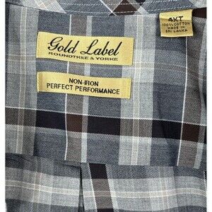 Roundtree & Yorke Gold Label Performance Gray Plaid Shirt Men's 4XT Long Sleeve