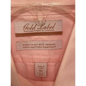 Roundtree & Yorke Gold Label Pink Dress Shirt 16 /33 Non-Iron 100% Cotton Pinpoi