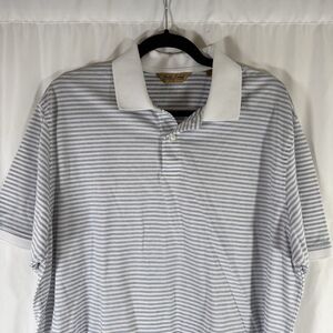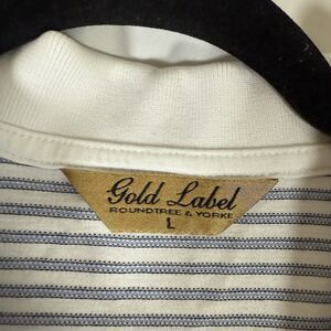 Roundtree Yorke Gold Label Polo Men Large White Striped Short Sleeve 100% Cotton