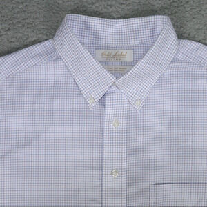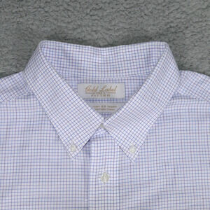 Roundtree Yorke Gold Label Shirt Mens 17-36 FITTED Blue Button Up Long Sleeve