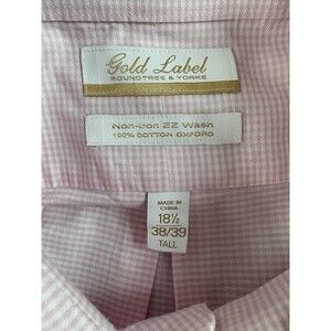 Roundtree Yorke Gold Label Shirt Mens 18.5 / 38 TALL Pink White Check