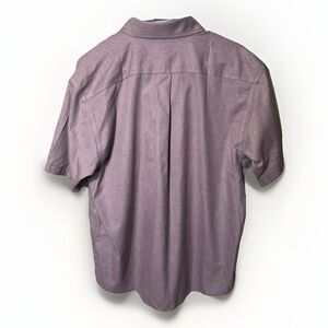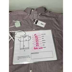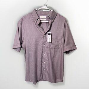 The Roundtree & Yorke Gold Label Shirt is a men's medium burgundy button-up shirt made of non-iron cotton. This shirt features a collared neckline, short sleeves, and a regular fit. With accents like button closures and a button-down collar style, this shirt is versatile for occasions including travel, parties, casual wear, workwear, or business attire. Additionally, the shirt is wrinkle-resistant, making it a practical and stylish choice for any season.