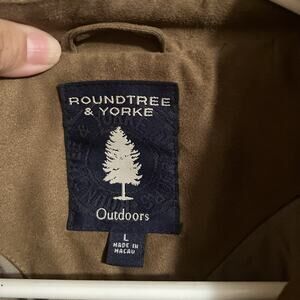 Roundtree & Yorke Jacket Men Size L Brown Faux Suede Button Up Bomber Vintage
