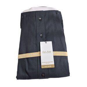 Roundtree & Yorke Men Dress Shirt Gold Label Black Slim Fit Size 20 36-37 (35)