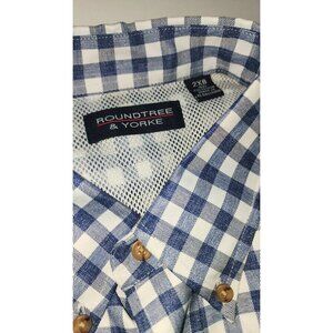 Roundtree & Yorke Men's 2XB Blue & White Check Button-Down Shirt Long Sleeve New