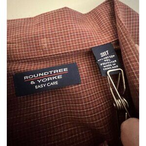 Roundtree & Yorke Mens 3XLT Shirt Maroon Plaid Long Sleeve Button Down Easy Care.