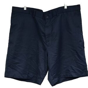 Roundtree & Yorke Men's 42 Adjustable Waist 9" Dress Shorts Flat Front Navy Blue