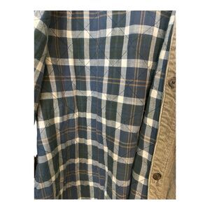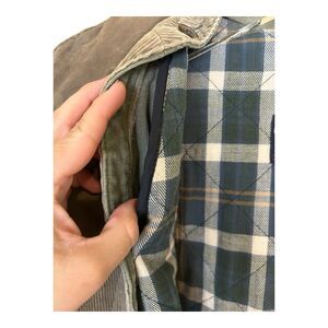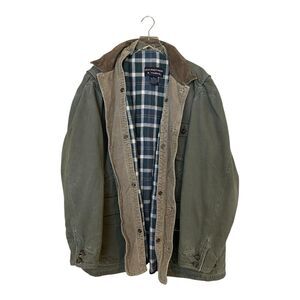 Good condition! Removable plaid snap button liner. Leather/corduroy collar. Canvas body.