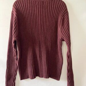 Roundtree & Yorke Mens Burgundy Ribbed Knit Classic V-Neck Sweater Size Large