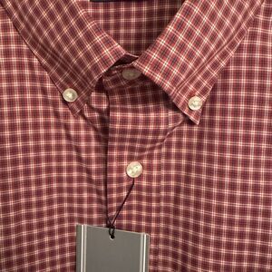 The Roundtree & Yorke Men's Casual Button Down Shirt in XL size is a stylish and versatile addition to any man's wardrobe. This short sleeve shirt features a red classic plaid pattern with a collared neckline and button closure. Made from a blend of polyester and cotton, this shirt is easy to care for and machine washable. It is suitable for both casual and business occasions, with a regular fit and convenient pockets. Perfect for everyday wear or a more polished look.