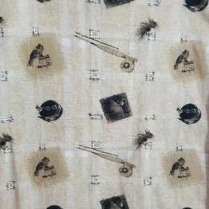 GUC: {Roundtree & Yorke} Mens Fishing Novelty Print Button-Down Casual Shirt. Short Sleeves. One front Pocket. 100% Cotton.