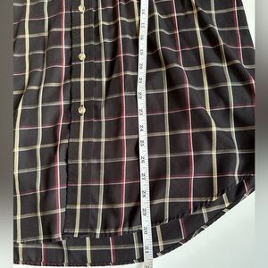 Roundtree & Yorke Mens L Button Up Shirt Brown Plaid Easy Care Cotton Blend